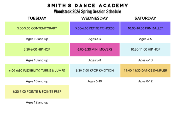 We would love to have you and your dancer join us for our 5 week Spring session at our Woodstock studio.
